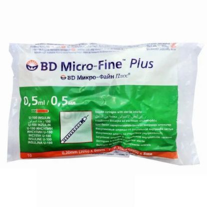 Шприцы инсулиновые Микро-Файн Плюс / Micro-fine Plus 100МЕ/0,5мл с иглой 30G (0.30мм*8мм), 10 шт.