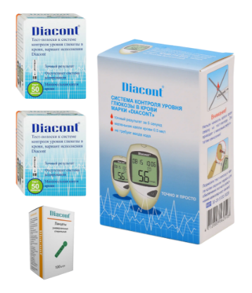 Глюкометр Диаконт + 2 уп. т/п Диаконт №50 + 1уп ланцетов Диаконт №100