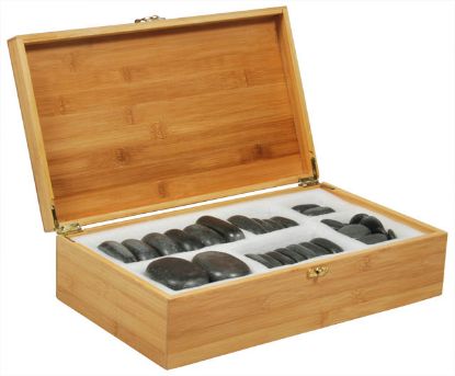 Набор массажных камней Med-Mos из базальта в коробке из бамбука (45 шт.) НК-2Б