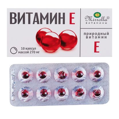 Витамин Е Mirrolla, токоферол природный, 10 капсул